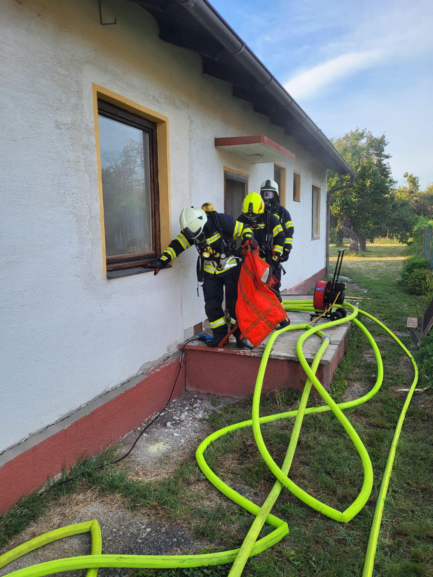 Kellerbrand mit vermissten Personen lautete die Einsatzmeldung die wir über Funk erhalten haben. Wie bei solchen Szenarien üblich rüsteten sich unsere Atemschutztrupps in den Fahrzeugen aus, sodass am Einsatzort rasch interveniert werden kann. Nach kurzer Lageerkundung und Rücksprache mit dem örtlichen Einsatzleiter, bekamen die Atemschutztrupps von deren Gruppenkommandanten den Einsatzbefehl zur Personensuche unter Vornahme einer Löschleitung. Die weiteren Einsatzkräfte bauten eine Versorgungsleitung zu unserem Rüstlöschfahrzeug auf und sicherten die Einsatzstelle entsprechend ab.