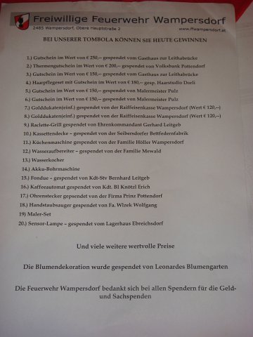 Die FF Wampersdorf bedankt sich bei allen Besuchern, bei allen Firmen für die tolle Unterstützung und natürlich auch bei den Helfern.