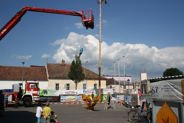 Der Samstag war zuerst traditionell den kleinen Besuchern gewidmet. Zum Kindernachmittag war die Feuerwehr Pottendorf mit ihrer Teleskopmastbühne gekommen. Wie schon im Vorjahr wurde heuer ein Kistenkletterbewerb organisiert, welcher bei unseren „kleinen“ Besuchern großen Anklang fand. Doch auch das Zielspritzen, bei dem es tolle Preise zu gewinnen gab, kam bei unseren kleinen Gästen gut an.
