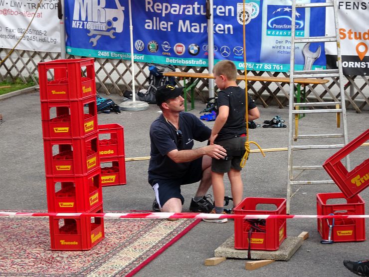 Der Samstag war zuerst traditionell den kleinen Besuchern gewidmet. Zum Kindernachmittag war die Feuerwehr Pottendorf mit ihrer Teleskopmastbühne gekommen. Wie schon in den Vorjahren wurde heuer ein Kistenkletterbewerb organisiert, welcher bei unseren „kleinen“ Besuchern großen Anklang fand. Doch auch das Zielspritzen, bei dem es tolle Preise zu gewinnen gab, kam bei unseren kleinen Gästen gut an.