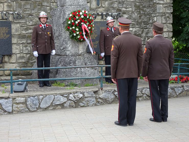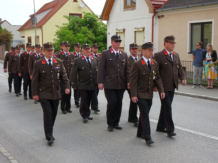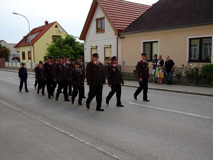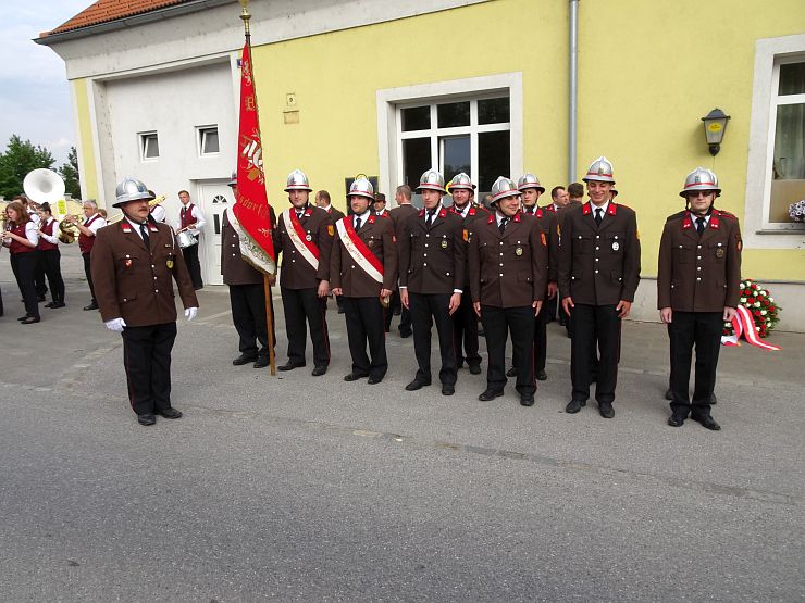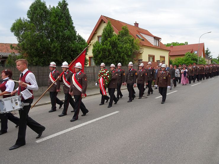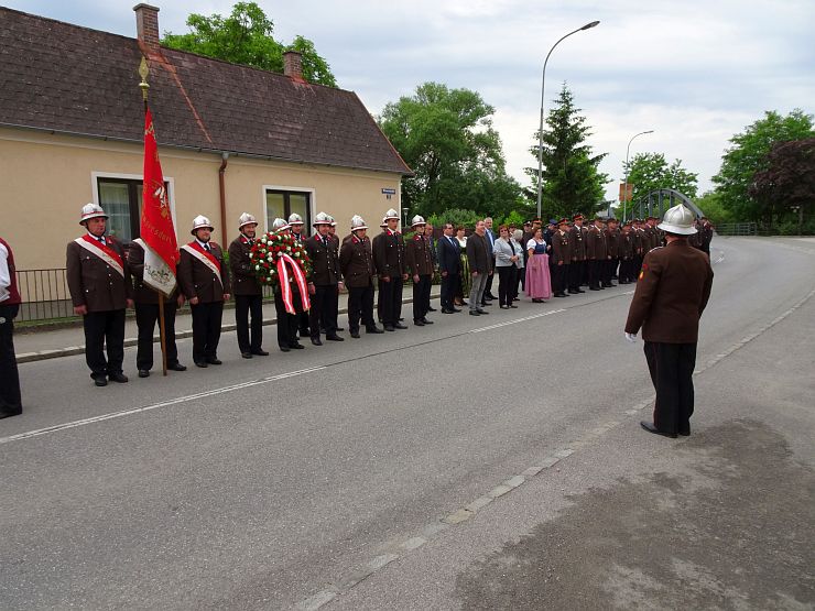 Am Sonntag begann um 08:00 Uhr der offizielle Festakt. Ein Ehrenzug der Freiwilligen Feuerwehr Wampersdorf empfing beim Gasthof zur Leithabrücke die Ehren- und Festgäste sowie die Kameraden der umliegenden Feuerwehren. Nach der Kranzniederlegung und einer Gedenkminute an unsere verstorbenen Kameraden beim Kriegerdenkmal fand um 08:30 Uhr die Heilige Messe im Feuerwehrhaus statt.