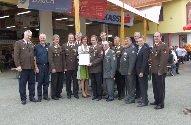 Abschnittsfeuerwehrkommandant BR Alexander Richter bedankte sich für die Einsatzbereitschaft des ganzen Unterabschnittes (mit über 250 Einsätzen) und überreichte OBI Erich Knötzl eine Urkunde seitens des NÖ-Landesfeuerwehrverbandes für das 140jährige Bestehen der Feuerwehr Wampersdorf.