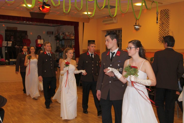 Um 20.30 Uhr eröffneten die Jungfeuerwehrmänner mit Ihren Tanzpartnerinnen den Ball mit einer Polonaise.