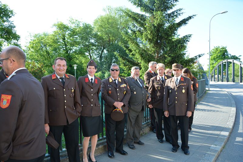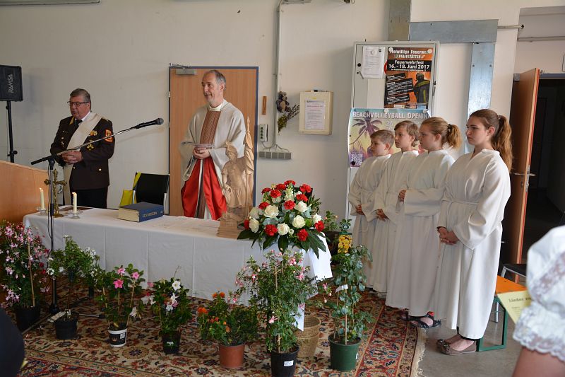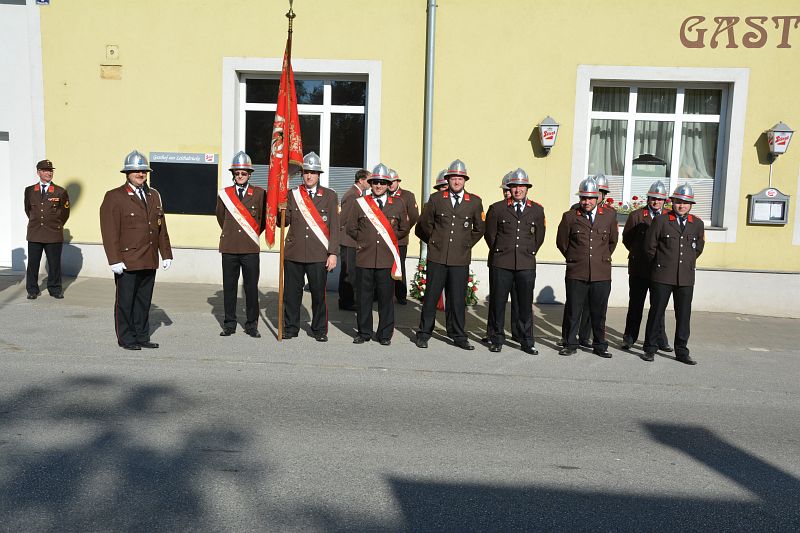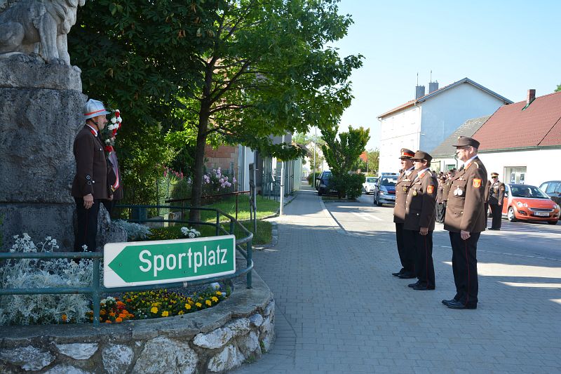 Am Sonntag begann um 08:00 Uhr der offizielle Festakt. Ein Ehrenzug der Freiwilligen Feuerwehr Wampersdorf empfing beim Gasthof zur Leithabrücke die Ehren- und Festgäste sowie die Kameraden der umliegenden Feuerwehren. Nach der Kranzniederlegung und einer Gedenkminute an unsere verstorbenen Kameraden beim Kriegerdenkmal fand um 08:30 Uhr die Heilige Messe im Feuerwehrhaus statt.