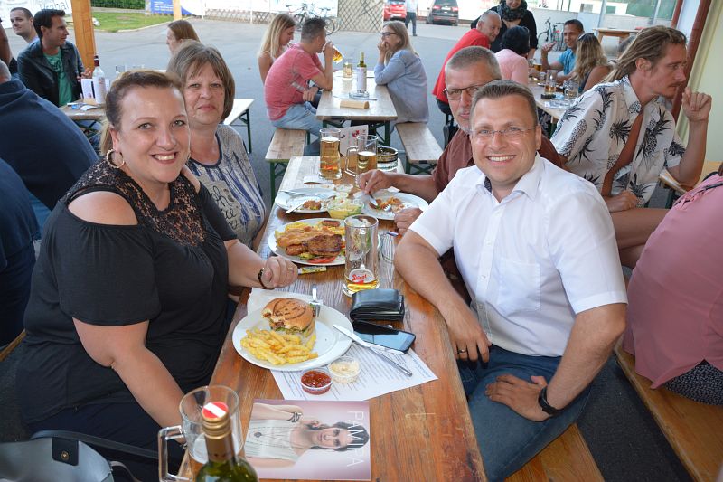 Am Abend gab es dann neben den „Standardspeisen“ auch gegrillte und gebackene Hühnerleber mit Dip-Saucen. Ein Highlight auf der heurigen Speisekarte war der „FF Bacon Cheeseburger“, welcher mit zwei Burgersaucen serviert wurde.