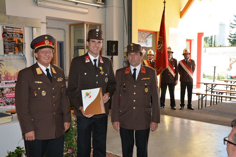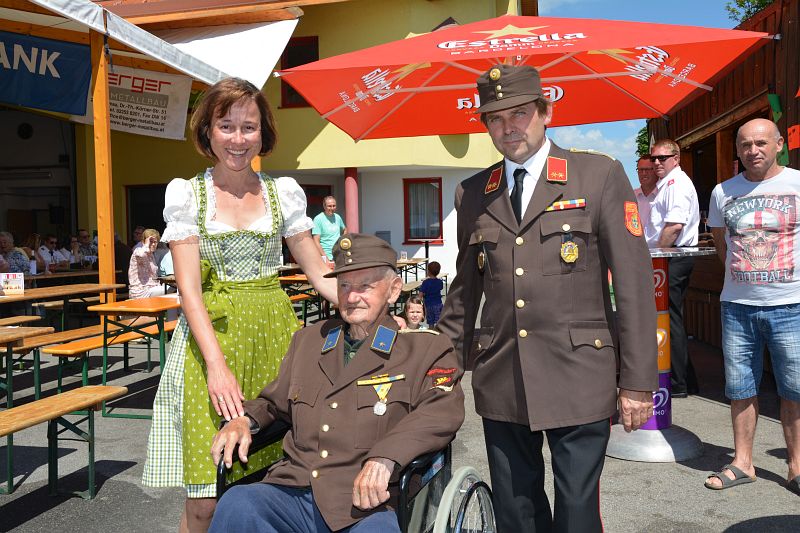 Abschnittsfeuerwehrkommandant-Stellvertreter ABI Walter Moser gratulierte der Feuerwehr Wampersdorf zum 20. Fest – speziell auch der “Küchencrew“, die mit dem FF Bacon Cheeseburger die Gäste verwöhnte. Aufgrund seiner Verdienste um das Feuerwehrwesen wurde im Anschluss, HLM Gerald Eder das Verdienstzeichen 3. Klasse des NÖ Landesfeuerwehrverbandes verliehen.