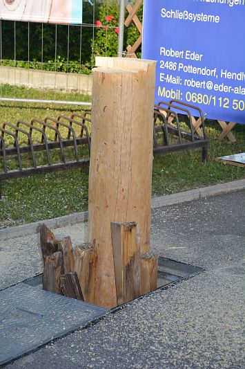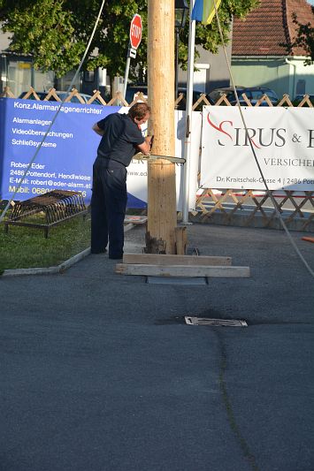 Am Abend wurde der Maibaum umgeschnitten, was traditionell den Abschluss des Feuerwehr Festes darstellt. Mit der großen Verlosung, bei welcher es viele wertvolle Preise, unter anderem auch den Maibaum, zu gewinnen gab, endete das 20. Feuerwehr Fest.