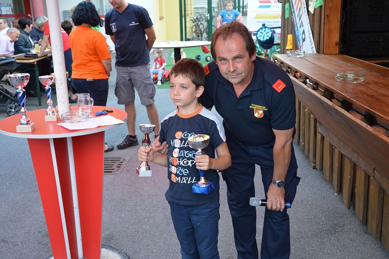 Der Samstag war zuerst traditionell den kleinen Besuchern gewidmet. Zum Kindernachmittag war die Feuerwehr Pottendorf mit ihrer Teleskopmastbühne gekommen. Wie schon in den Vorjahren wurde heuer ein Kistenkletterbewerb organisiert, welcher bei unseren „kleinen“ Besuchern großen Anklang fand. Doch auch das Zielspritzen, bei dem es tolle Preise zu gewinnen gab, kam bei unseren kleinen Gästen gut an.