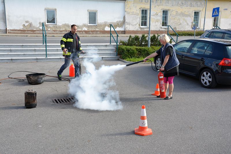 Neben der Feuerlöscherüberprüfungsaktion konnte auch die richtige Handhabung der Feuerlöscher bei einem Brandsimulator beübt werden.
