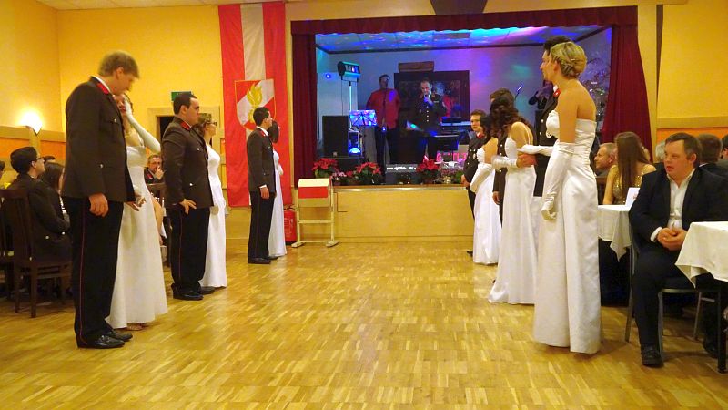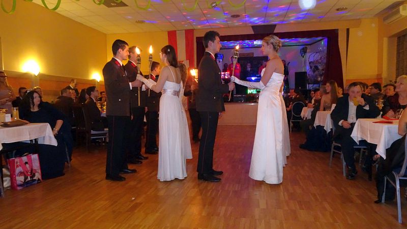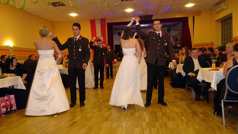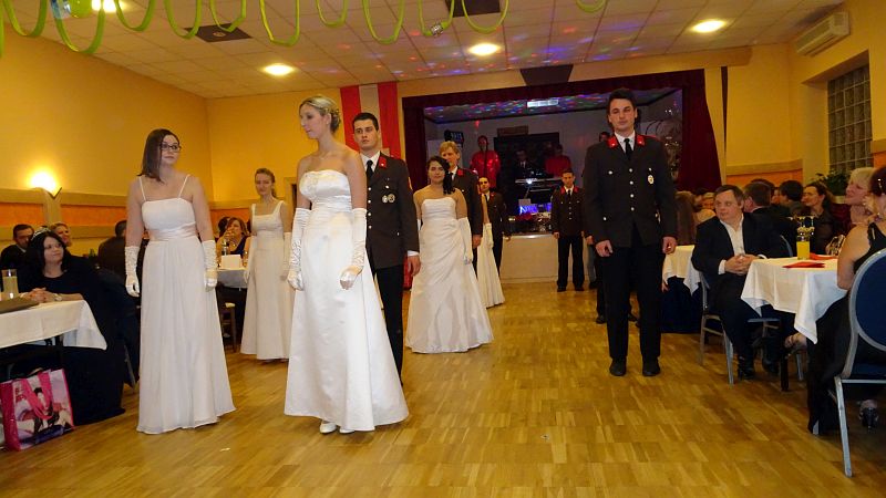 Um 20.30 Uhr eröffneten die Jungfeuerwehrmänner mit Ihren Tanzpartnerinnen den Ball mit einer Polonaise. In seiner Eröffnungsrede begrüßte Kommandant OBI Erich Knötzl die erschienenen Ehren- und Festgäste aus den Bereichen Politik, Wirtschaft, Feuerwehr und Rettungswesen.