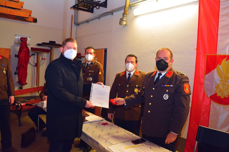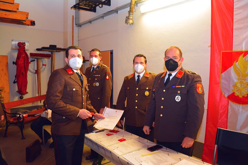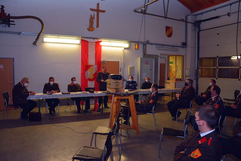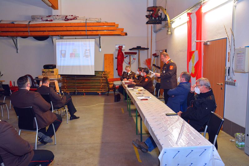 Nach einer Gedenkminute an die verstorbenen Kameraden gaben OBI Bernhard Leitgeb und BI Martin Lanmüller einen ausführlichen Jahresrückblick über die Feuerwehrtätigkeiten im Jahr 2021 sowie einen kleinen Ausblick auf 2022.