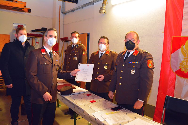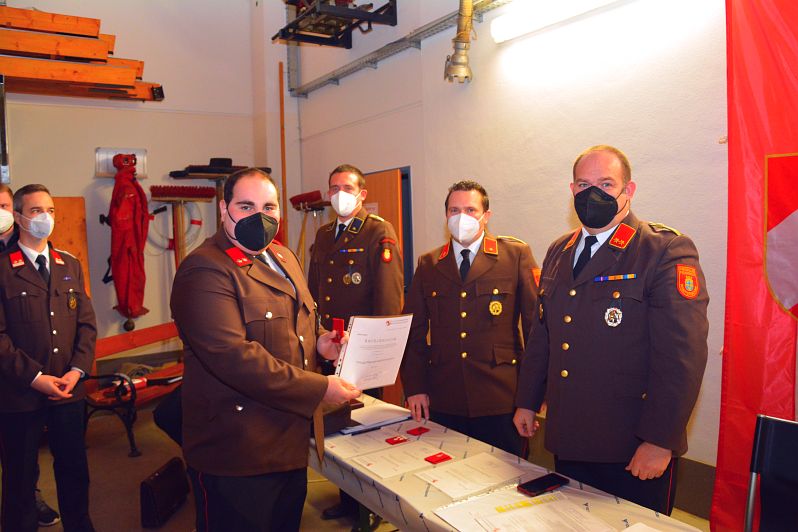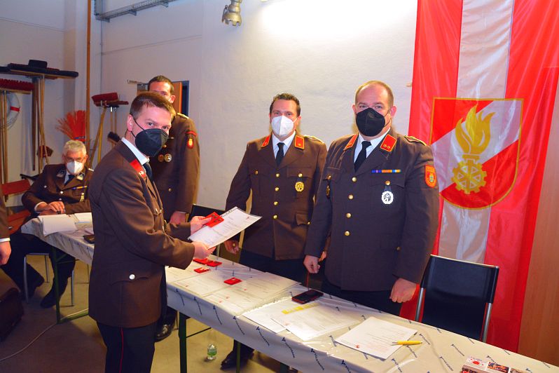 Im Rahmen seines Berichtes konnte Kdt. OBI Bernhard Leitgeb folgende Kameraden Befördern: